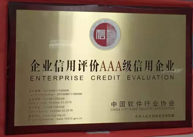 日前,2015年(第八批)中國軟件和信息服務(wù)業(yè)企業(yè)信用評價結(jié)果公布,成都任我行軟件股份有限公司獲得最高級別信用評價:AAA級信用企業(yè)。